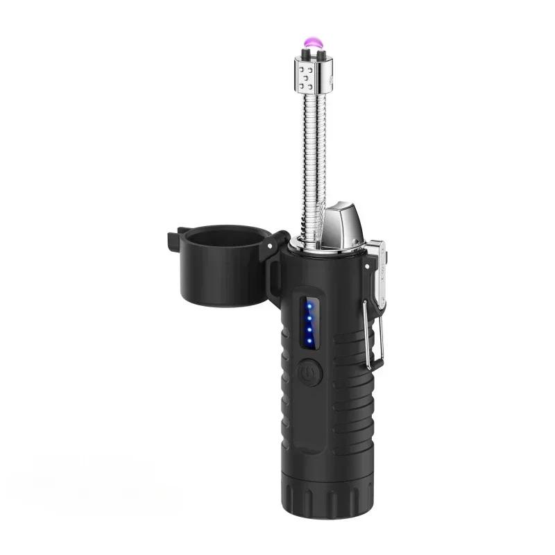 Electric Windproof Metal Lighter Flameless Dual Arc Plasma Rechargeable USB Waterproof Lighter with Flashlight Outdoor Tools