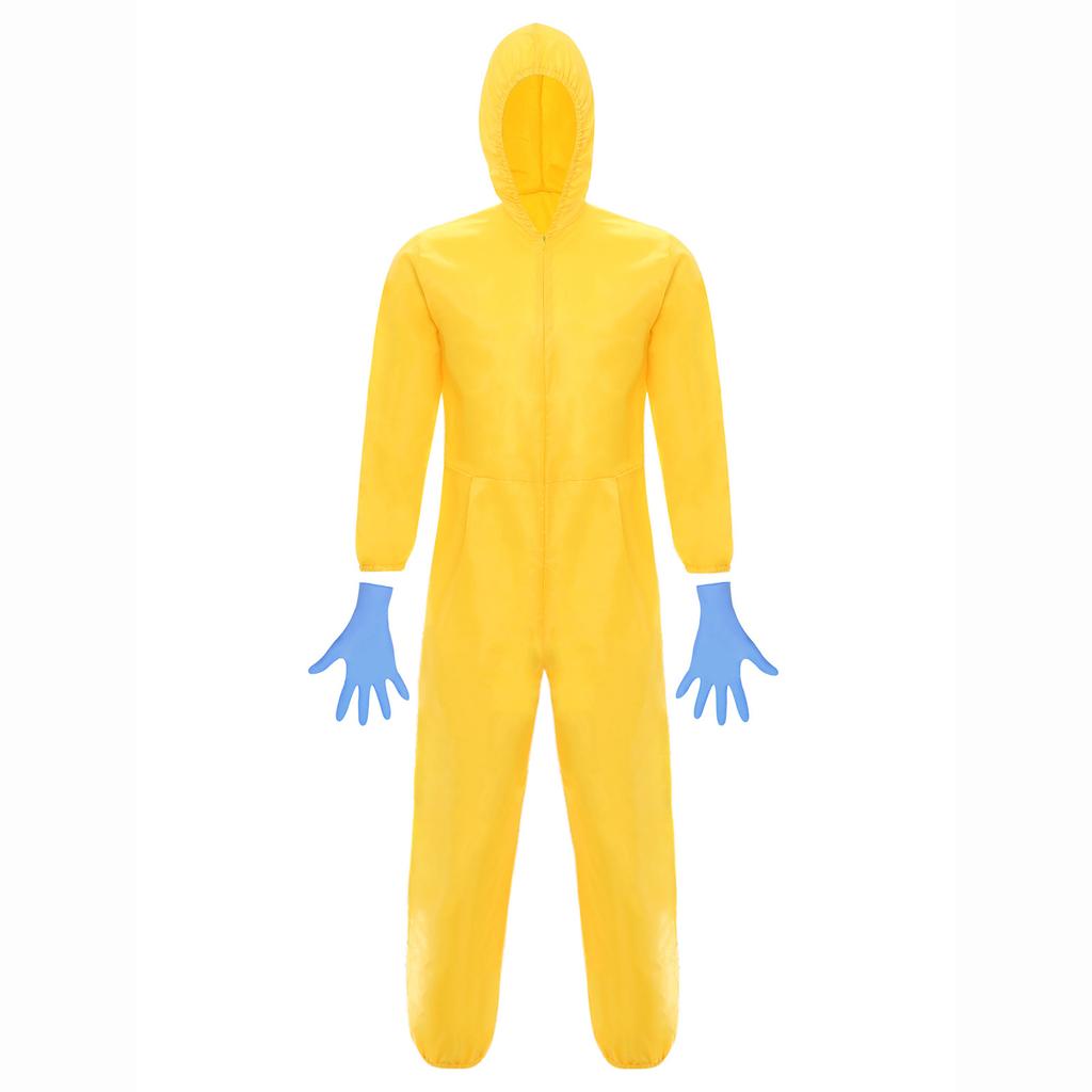Salopetă completă cu glugă pentru bărbați, mâneci lungi, fermoar frontal, deschidere elastică, salopetă, costum hazmat, costum de Halloween