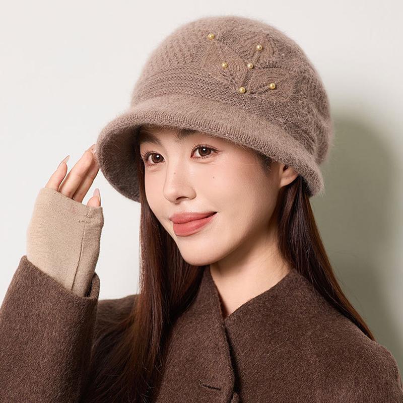 Mother Warm Hat Women's Autumn Winter Rabbit Hair Knitted Hat Middle-Aged and Elderly Thick Ear Protection Fisherman Hat