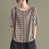 ZANZEA Women Casual Plaid Print Loose Half Sleeve Blouse