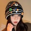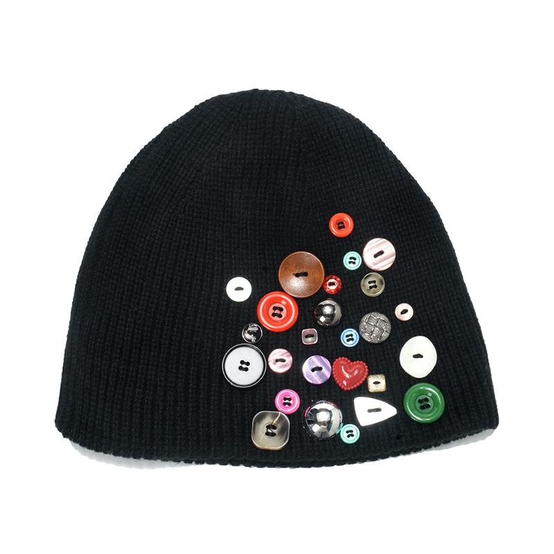 Personalized yuppie wool hat trendy colorful buttons niche fashionable knitted hat Internet celebrity same autumn and winter hat cold hat woman