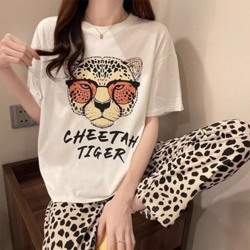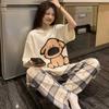 Women's Pajama Set Round Neck Short Sleeve Long Pants Casual Home Clothes Two-piece Set