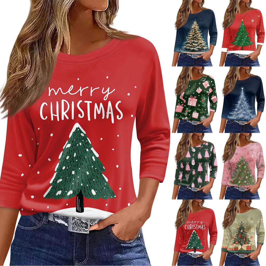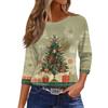 Top de damă cu decolteu O cu mâneci 3/4 cu imprimeu de Crăciun