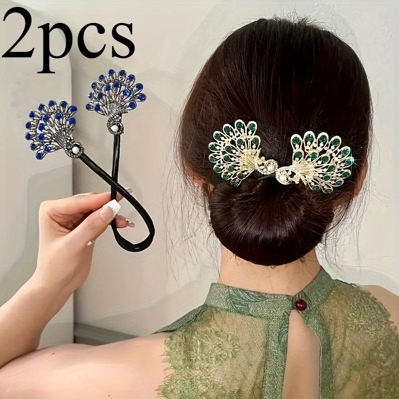 2 buc Bigudiuri Păun la Modă și Elegante, Bigudiuri Leneșe pentru Bucle DIY, Instrument de Coafat Coc Înalt cu Agrafă Twist Francez Decorată cu Strasuri