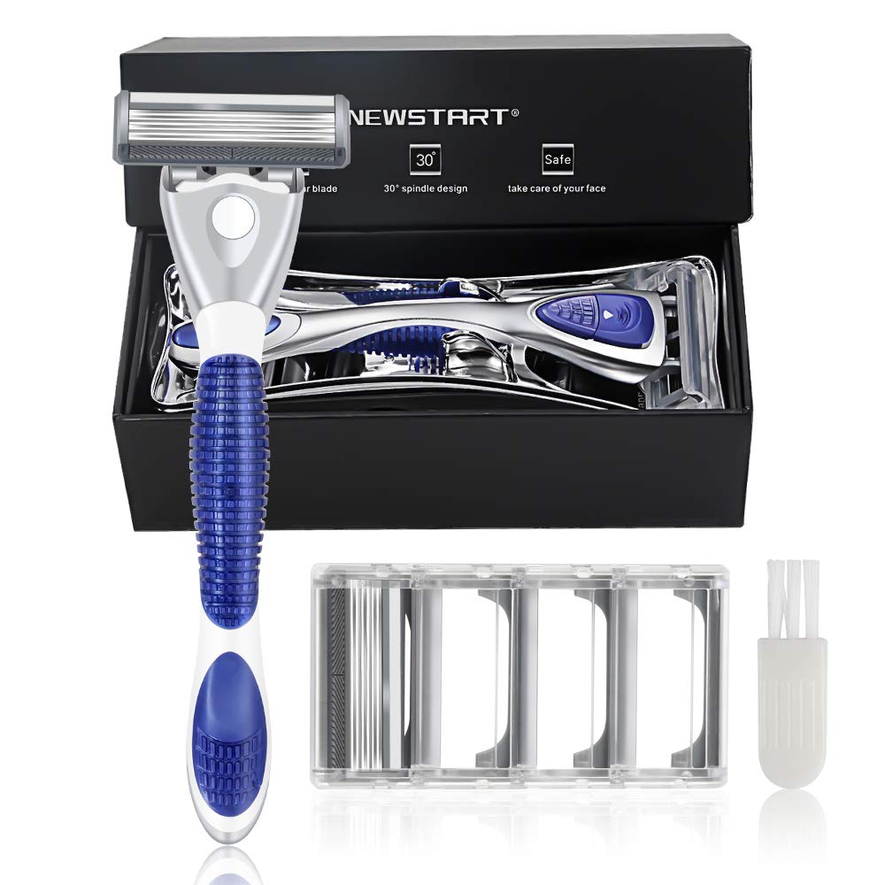 Close Includes 2 Replacement Blades Men's T-Shaped Razor, German-Made 6-Blade Shave, Washable/Shower-Safe, (Blue)