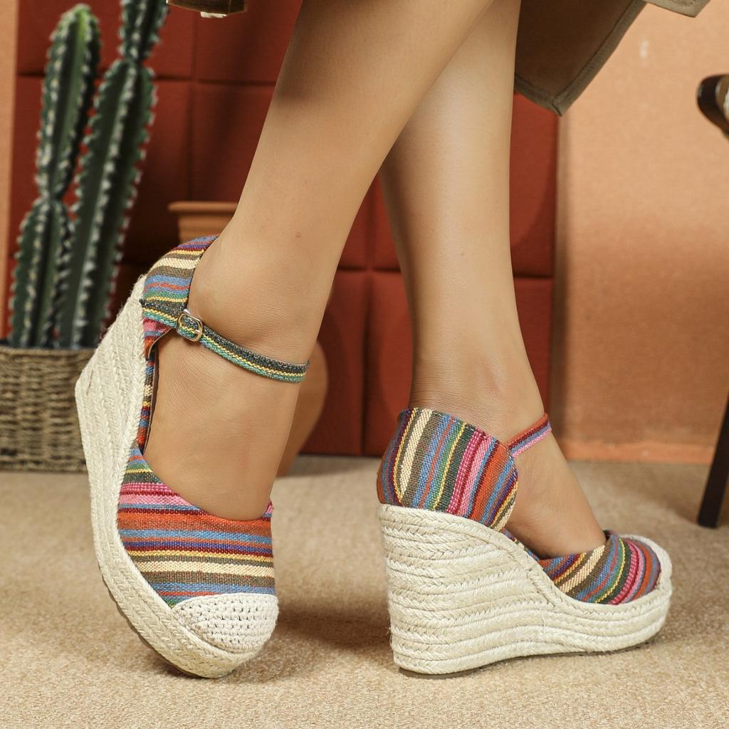 bohimian espadrilles round toe wedges ankle strap sandals heel platform shoes women sandals pumps comfort csaual