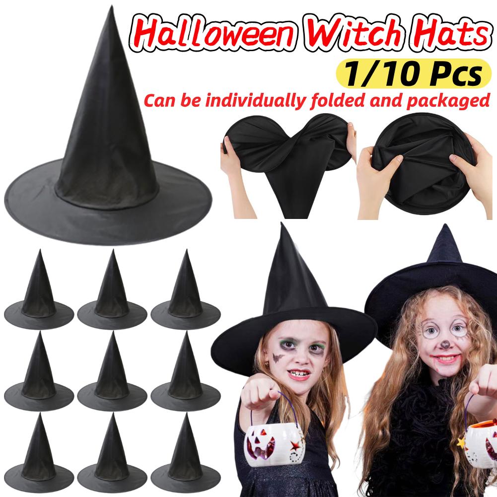 Halloween Black Witch Hat with Hanging Rope Wizard Cap Cosplay Costume Props Hanging Witch Hats Decor for Outdoor Garden Decor