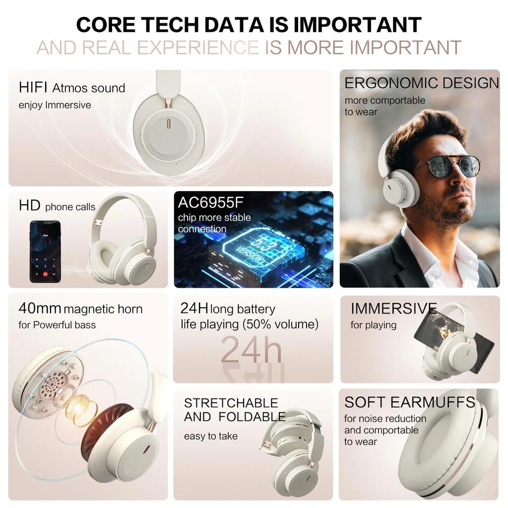 BT5.3 Wireless Foldable Headphones Portable Lightweight for Travel and Photography 400mAh Battery Noise Cancelling Earphones