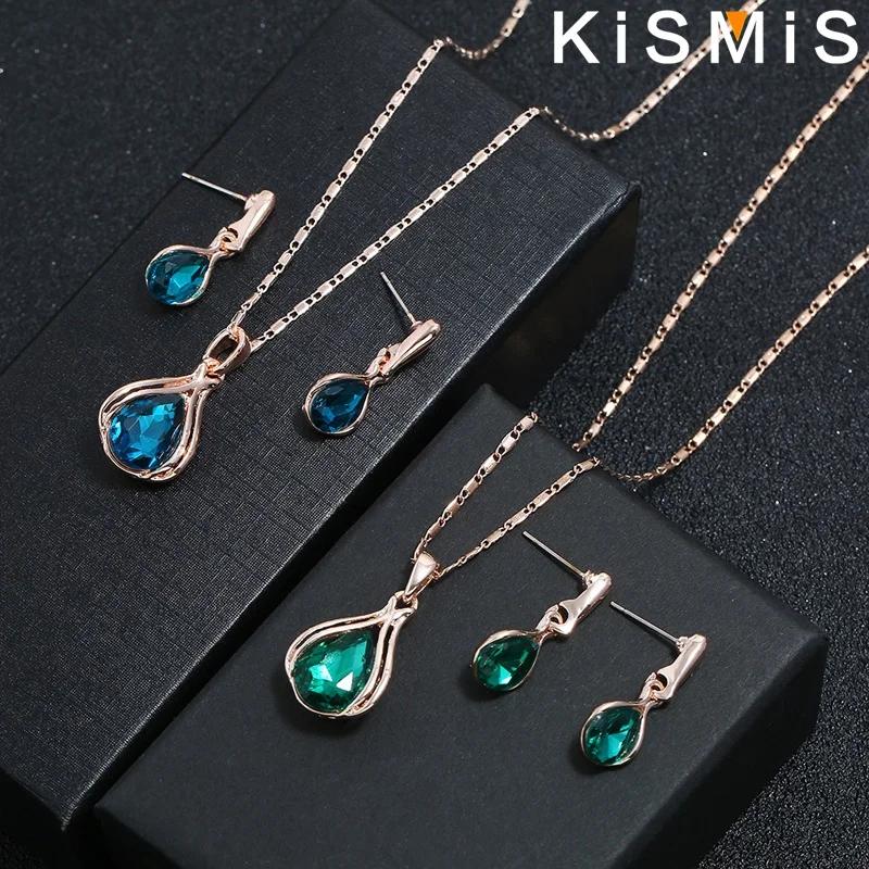 Luxury Women Water Drop Necklace Earring Jewelry Sets Fashion Party Accessories 3 Piece Set