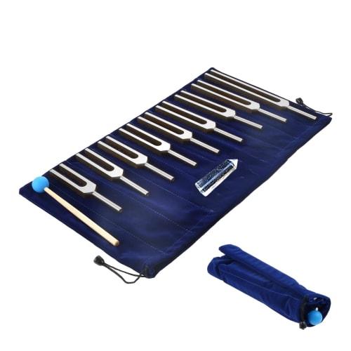 - Complete set of 9 tuning forks A set of 9 tuning forks (174 Hz, 285 Hz, 396 Hz, 417 Hz, 528 Hz, 639 Hz, 741 Hz, 852 Hz, 963 Hz), a crystal, a mallet, and a special storage bag.You can choose a tuning fork according to your mood and purpose, such as meditation, yoga, healing, etc.