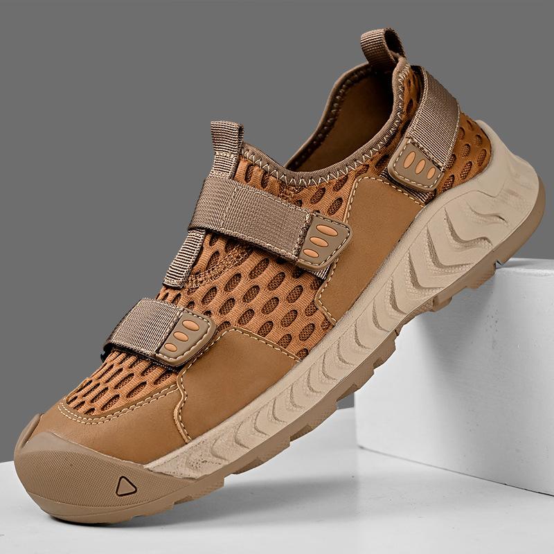 Sneakers men's 2025 new summer breathable mesh shoes men's leather Velcro soft sole one pedal bag head sandals