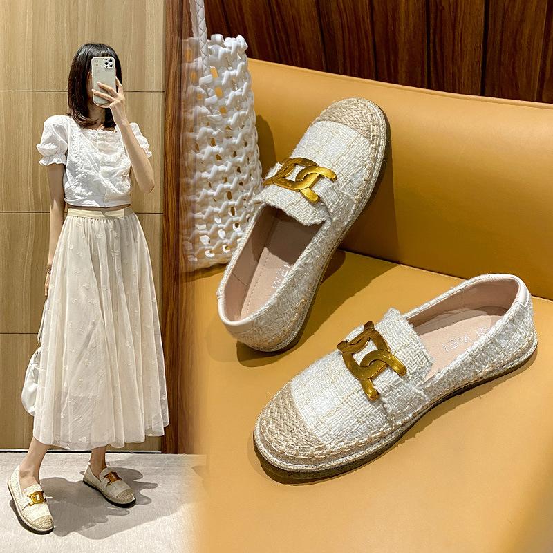 Xiaoxiangfeng fisherman shoes women's 2025 new flat-bottomed linen straw summer thick-soled lazy loafers