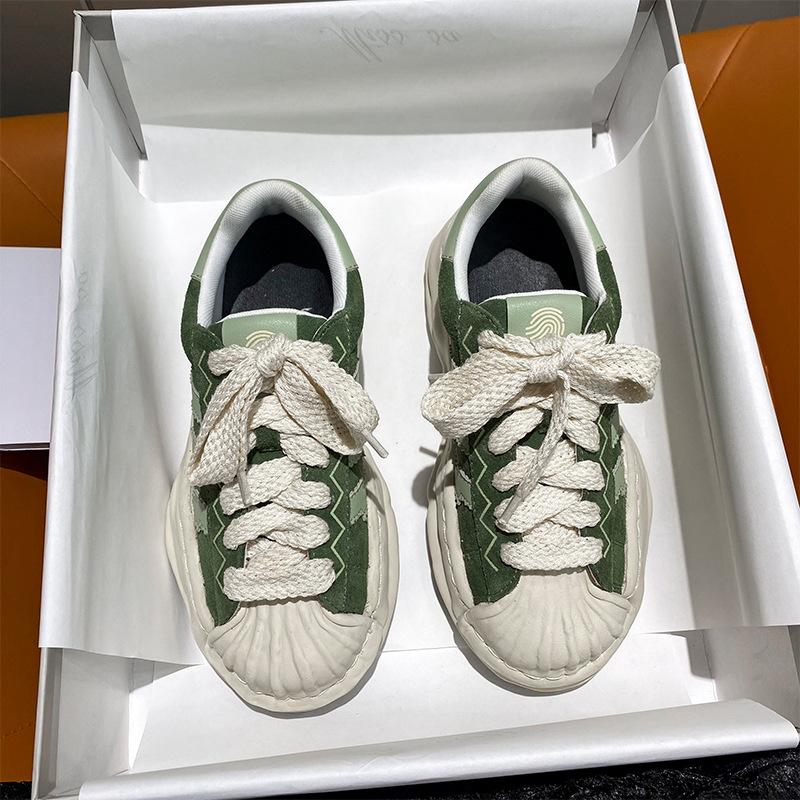 Dissolved shoes women's 2025 new shell head round head low-top casual board shoes color matching thick-soled leather casual women's shoes