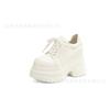 12Cm round head super high heel platform leather single shoes women's 2025 spring and autumn new waterproof table muffin lace-up small leather shoes