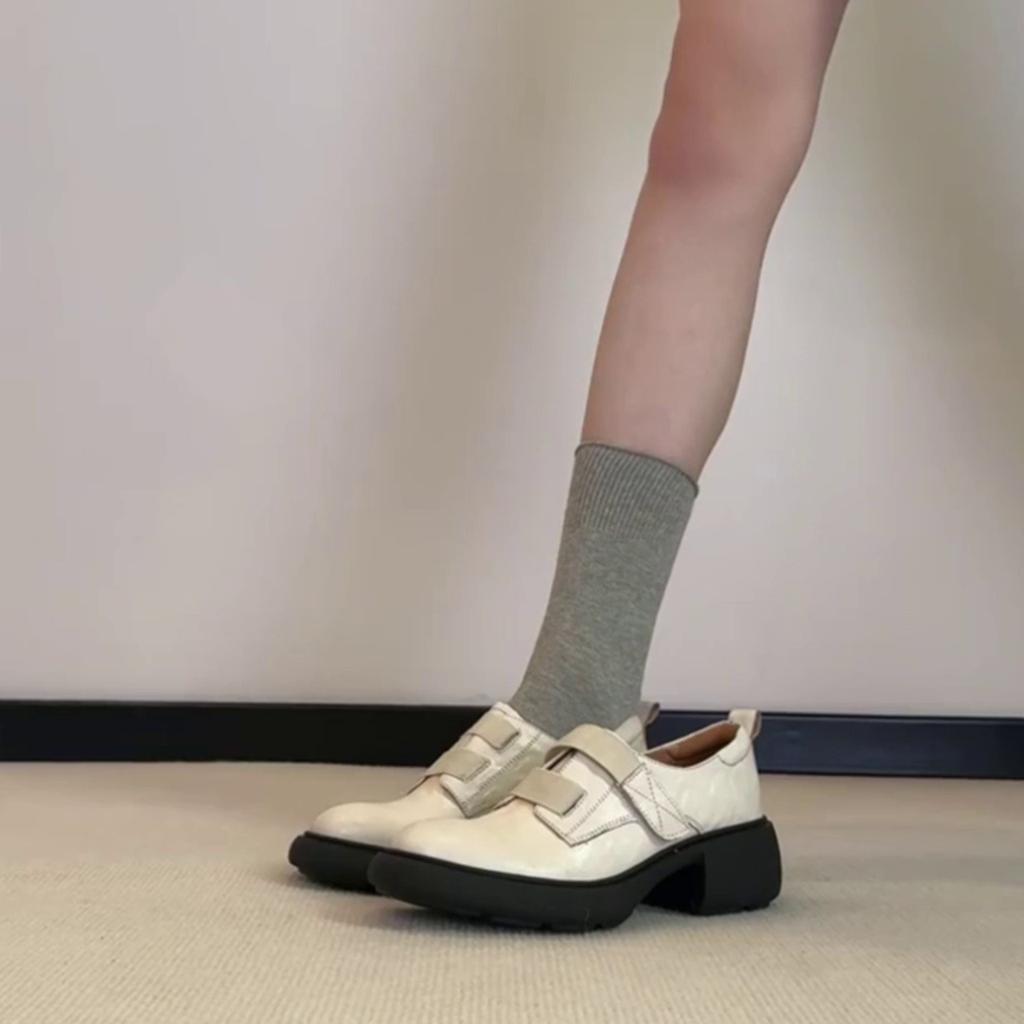 Sheepskin version~ Velcro small leather shoes women's British style retro one-pedal loafers platform muffin height-increasing single shoes