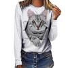 Round Neck Cat Pattern 3D Printed Casual Long Sleeved Women's T-shirts - Soft Medium Stretch Polyester Fabric Spring and Autumn Relaxed Fit Clothing