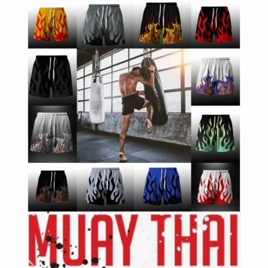 Fire Flame Muay Thai Boxing Kickboxing Shorts Pants 3D Print Fighting Training Unisex Men Women Quick Dry Fitness Gym Sport Workout Casual Streetwear