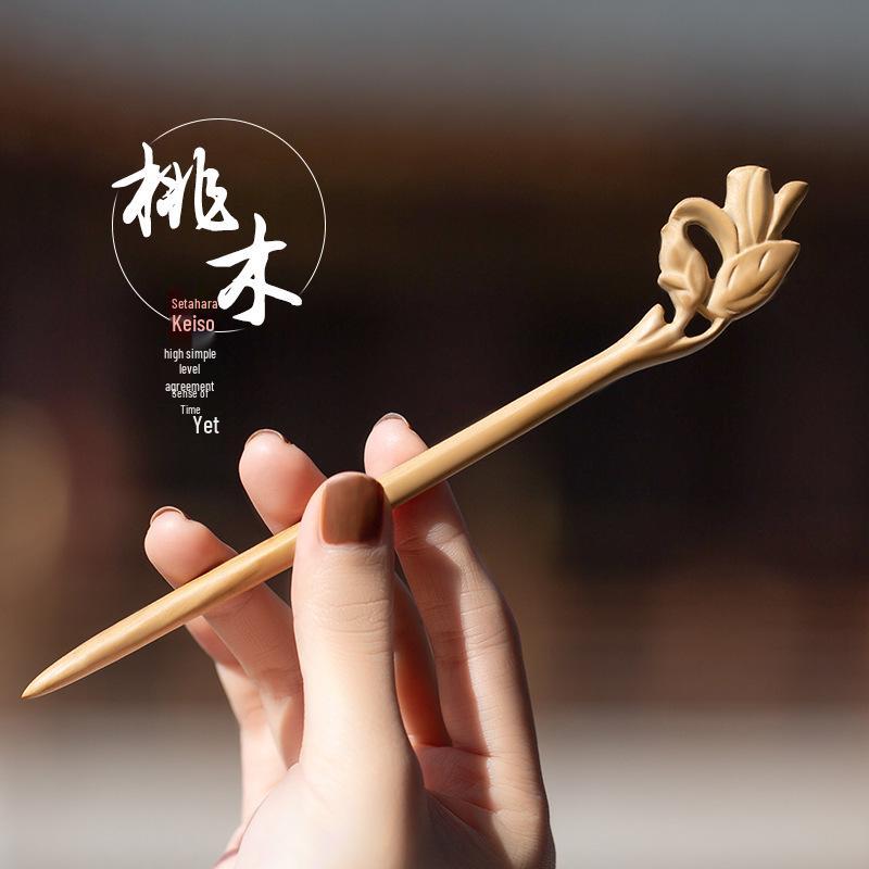 Livrare Gratuită Agrafă de Păr de Lux din Lemn de Piersic pentru Femei – Stil Chinezesc Antic & Modern