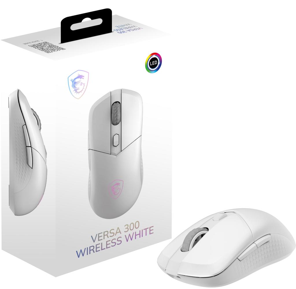 MSI VERSA 300 W WHITE Wireless Gaming Mouse, Lightweight 60g, WiredWireless, Ambidextrous, MS0757