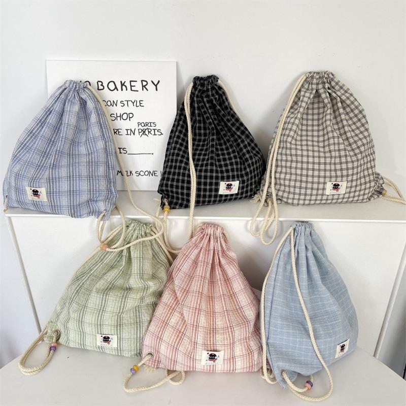 32 New fashion trend drawstring backpack beaded summer plaid canvas backpack simple commute