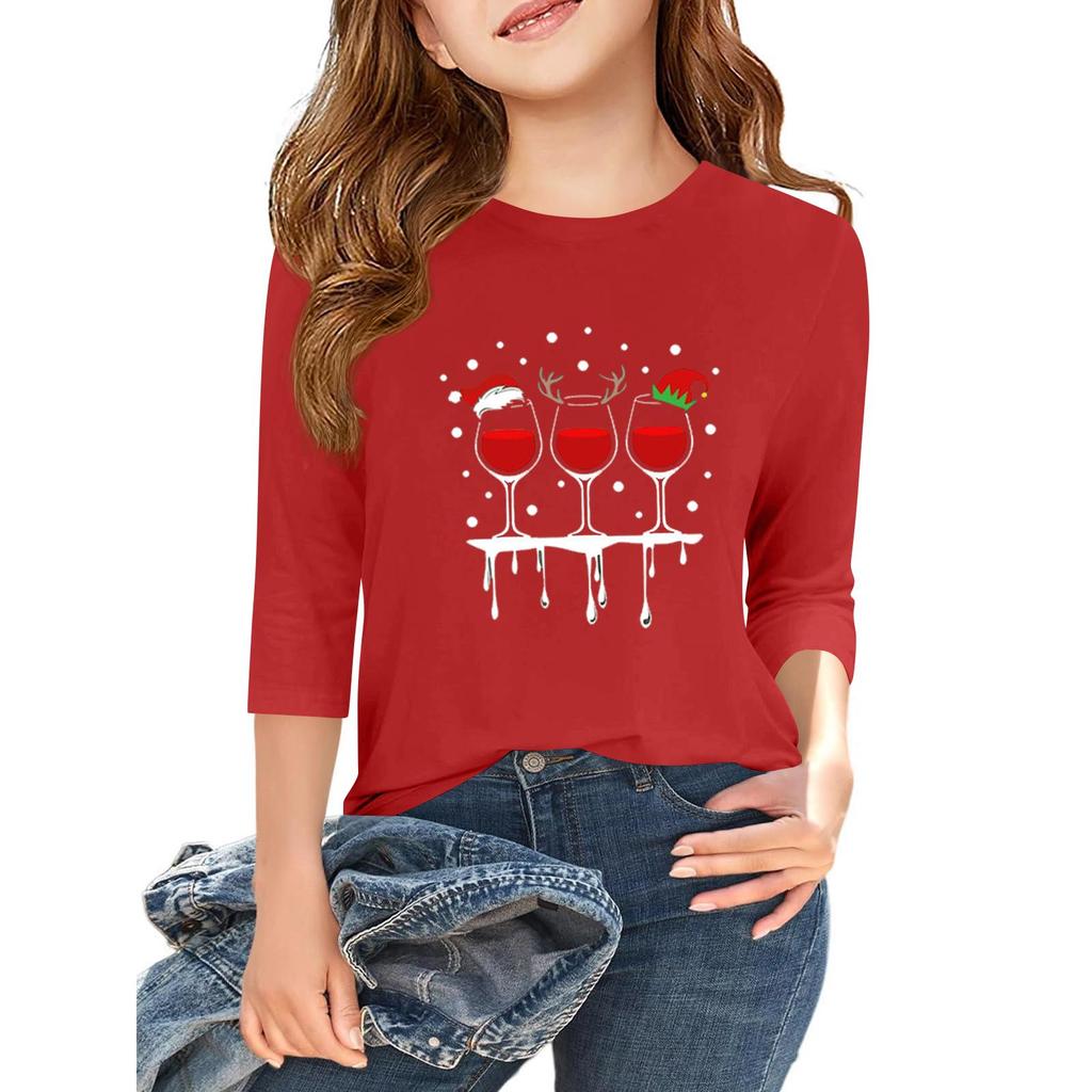 Tricou casual cu mâneci 3/4 pentru copii, cu gât rotund și imprimeu pentru Ziua Independenței