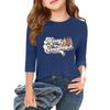 Tricou casual cu mâneci 3/4 pentru copii, cu gât rotund și imprimeu pentru Ziua Independenței