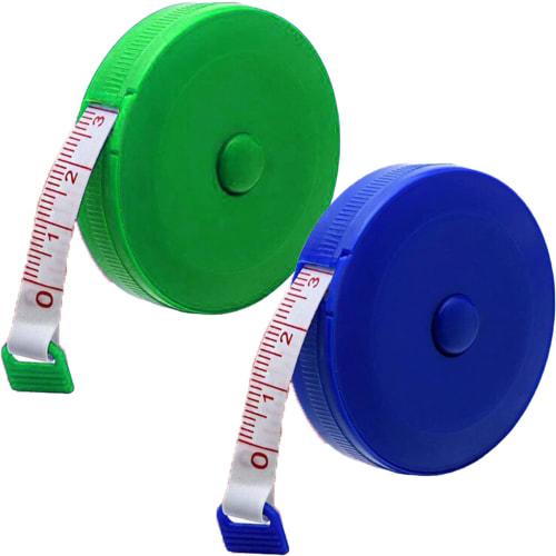Audiophile Diet Tape Measure, Soft Type, 1.5m, Centimeter and Inch Indications, Retractable, Push Button, Blue and Green, 2-Piece Set