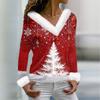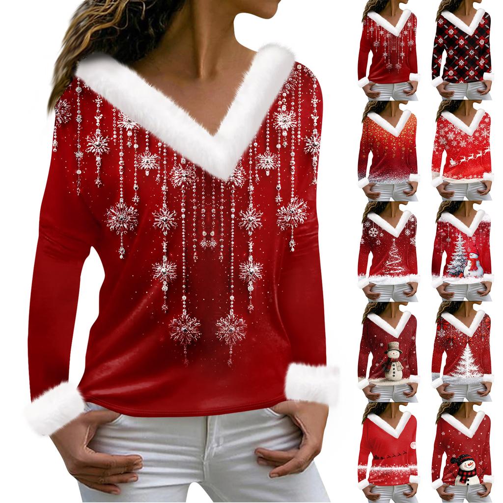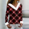Tricou de damă Tricou Cămașă de Crăciun Cu mânecă lungă Petrecere cu imprimeu de Crăciun Top cu decolteu în V