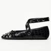 Fashion Rivet Bow Decoration Ballet Flats Women Punk Style Soft Leather Strap Mary Jane Shoes for Women Cozy Dance Casual Shoes