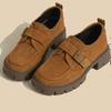 Mocasini de damă căptușiți cu lână 2025 Iarnă Nou Pantofi unici de piele întoarsă cu talpă groasă pentru femei, cu înălțime internă invizibilă