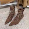 Women's Boots Fashion Lace Up Ankle Boots High Quality Suede Casual Boot Temperament Pointed Short Boot Women High Heeled Boots