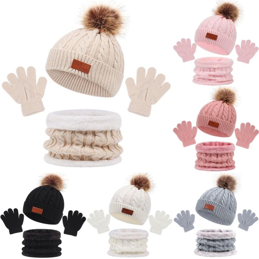 3Pcs Pompom Baby Hat Scarf Gloves Set Solid Color Bonnet Gloves Kits New Knitted Hats Scarfs
