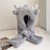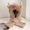 Ear Protection Bear Deer Ears Hat Soft Plush Integrated Cap Scarf Cartoon Winter Hat Women