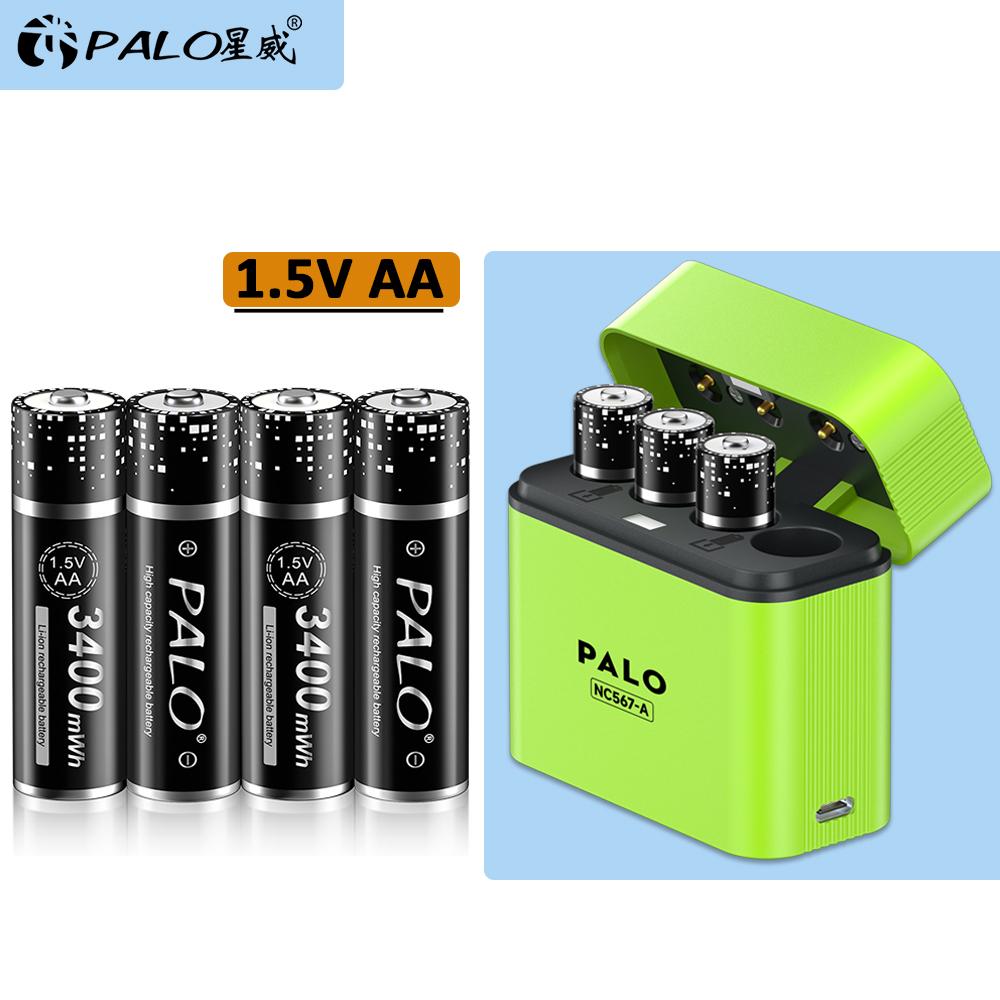 PALO Baterii Reîncărcabile AA 1.5V Litiu 3400mWh 1.5V Li-ion Baterie AA Cutie Încărcător Inteligent cu cablu de date TYPE-C