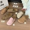 Leather cork bottom children's baotou half slippers outside wear spring and summer new one-pedal lazy shoes