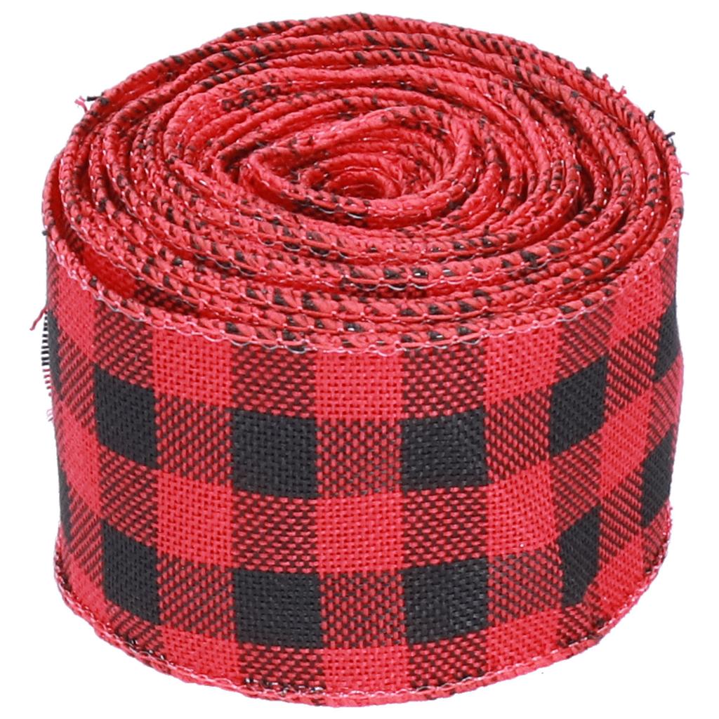 5m Christmas Wired Edge Ribbon Decorative Plaid Ribbon for Home DIY Gift Wrapping Crafts(Black Red )