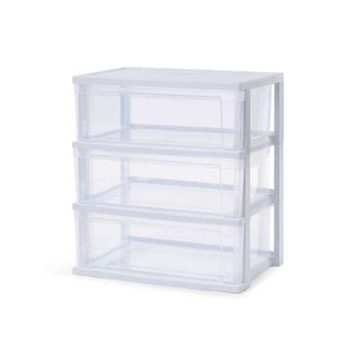 Iris Ohyama NSW-543 (New Model) Wide 3-Drawer Chest, Made in Japan, Easy Assembly, 21.6" W x 14.2" D x 22.2" H, White/Clear, Plastic Top