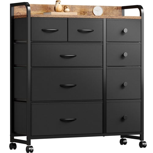 - Great Storage Capacity The drawers on the bottom two floors of the chest are higher, allowing you to store more diverse items.It has plenty of storage space for everything from accessories, files, toys, sweets, etc. to large items such as bath towels and winter clothes.You can leave keys, cups, vases, photos, etc. on the top plate.