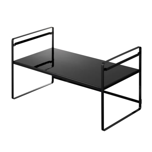 Yamazaki Toaster Rack, Wide, Black, Approx. W65.5 x D35 x H36cm, Tower Kitchen Rack with Two Height Adjustments, Work Space on the Bottom, and Hooks,