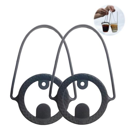 Startside Silicone Drink Cup Holder with Straw Holder (Black, Set of 2)