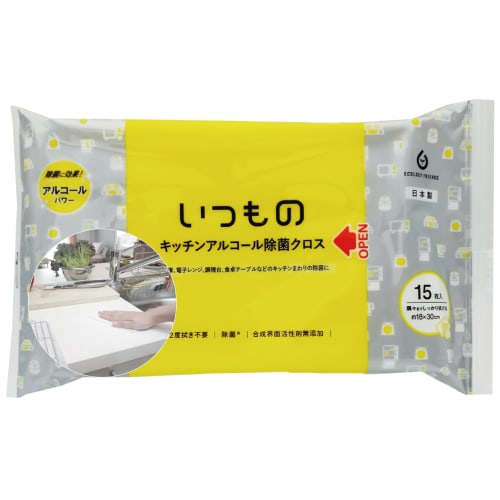 Hattori Paper Cleaning Wet Wipes, Kitchen Disinfectant, Alcohol Wipes, 15 Sheets, Natural Alcohol, Made in Japan, Usual ALP-7