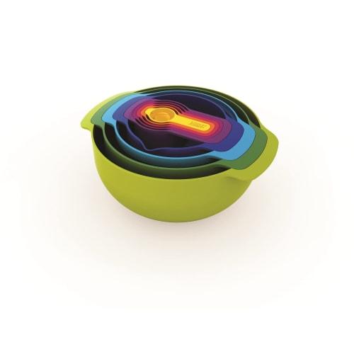 Joseph Joseph Nest 9 Plus 9-Piece Measuring Cup, Bowl, Drainer, and Measuring Spoon Set, Dishwasher Safe, Stackable, BPA-Free, Rainbow Colors [Authent