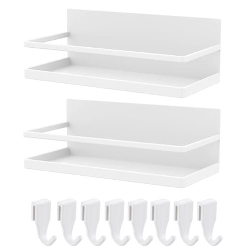 Whonor Kitchen Rack, Magnetic Rack, Approx. W25 x D12 x H9cm, White, 2-Piece Set, Super Strong Magnetic Condiment Rack, Bathroom, 7.5kg Weight Capacit