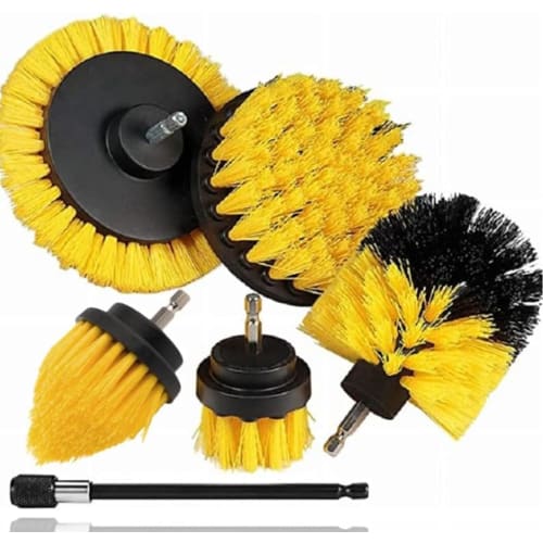 Generic Electric Drill Brush Set of 6 + Extension Rod (No Drill) Nylon Brushes, Medium Hardness, for Cleaning Windows, Car Frames, etc.