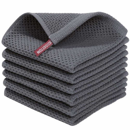 Set of 6 highly absorbent, quick-drying dishcloths, perfect for wiping glass, windows, mirrors, and sinks. Perfect for kitchen use. Gray waffle-patter
