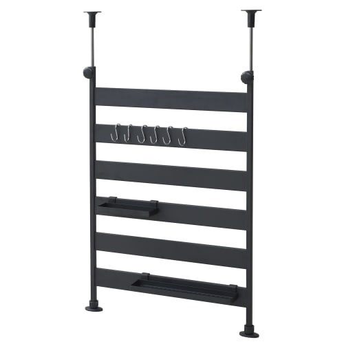 YAMAZEN Tension Kitchen Rack, 46cm Wide x 10cm Deep x 72-115cm High, Hanging/Placing, Heat-Resistant, 6 Hooks, 2 Trays, Assembly Required, Black, RTK-