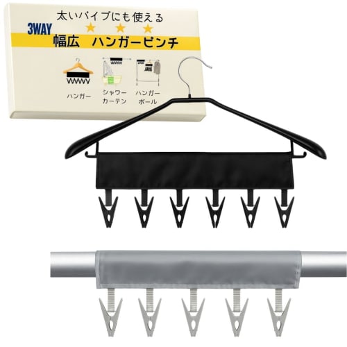 - Size: Width 33cm, 6 pinch pieces, black & gray set, 2 piece set, so you can hang a lot of laundry to dry as long as you have a regular hanger.Not only can you use it to dry small items, but you can also use two to dry things like bath towels.You can expect more ways to use it depending on your ideas.*Please be careful about similar products!Only cobalt planet products can be used with poles up to 33mm.*Hanger is not included.