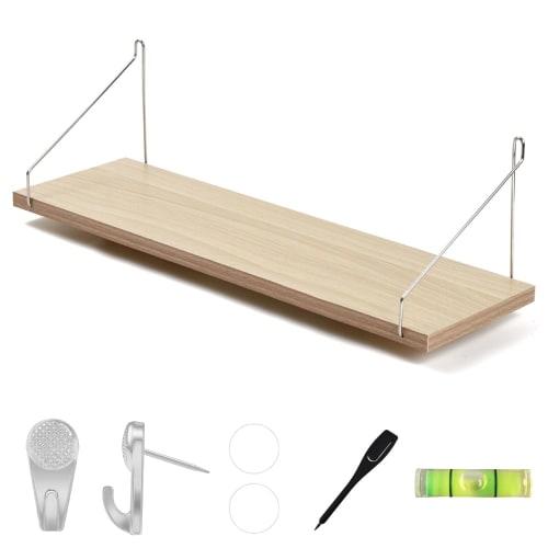 Wall-mounted shelf for rentals, installation compatible with plasterboard, 50cm, brown, wood grain, natural finish, decorative shelf, wall storage, to