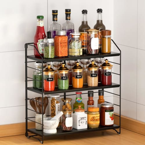 - Wide range of uses and multifunctionality This 3-tier storage rack can be used not only for storing seasonings in the kitchen, but also for a wide variety of uses, such as cosmetics, medicine cans, tea corners, office supplies, ornamental plant shelves, bathroom shelves, etc.It can be stored neatly in any location, making it useful at home or in the office.