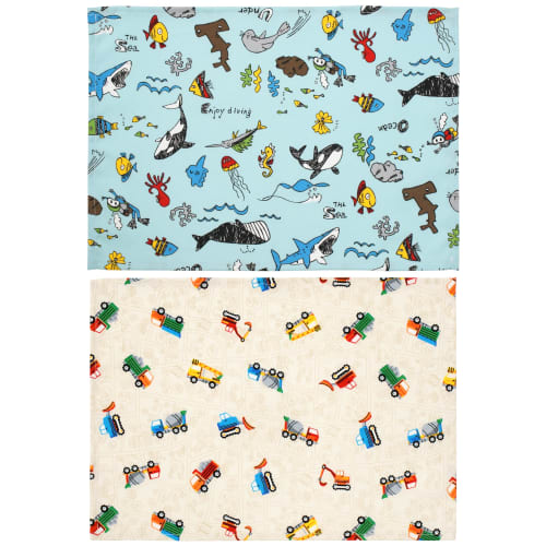 Small Lunch Mats for Elementary School Boys, Sizes 25 and 35, School/Kindergarten Use, Set of 2, Made in Japan, Sea Creatures, Car Design, Beige